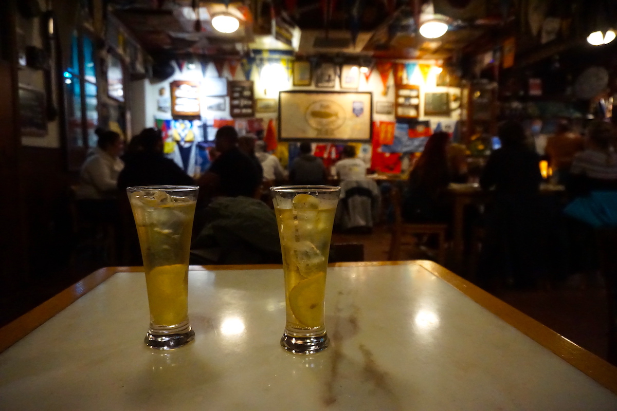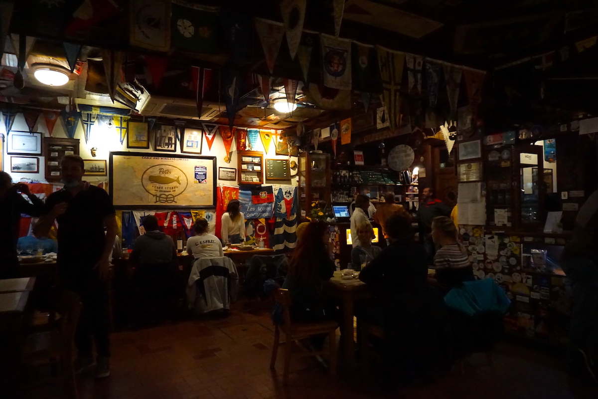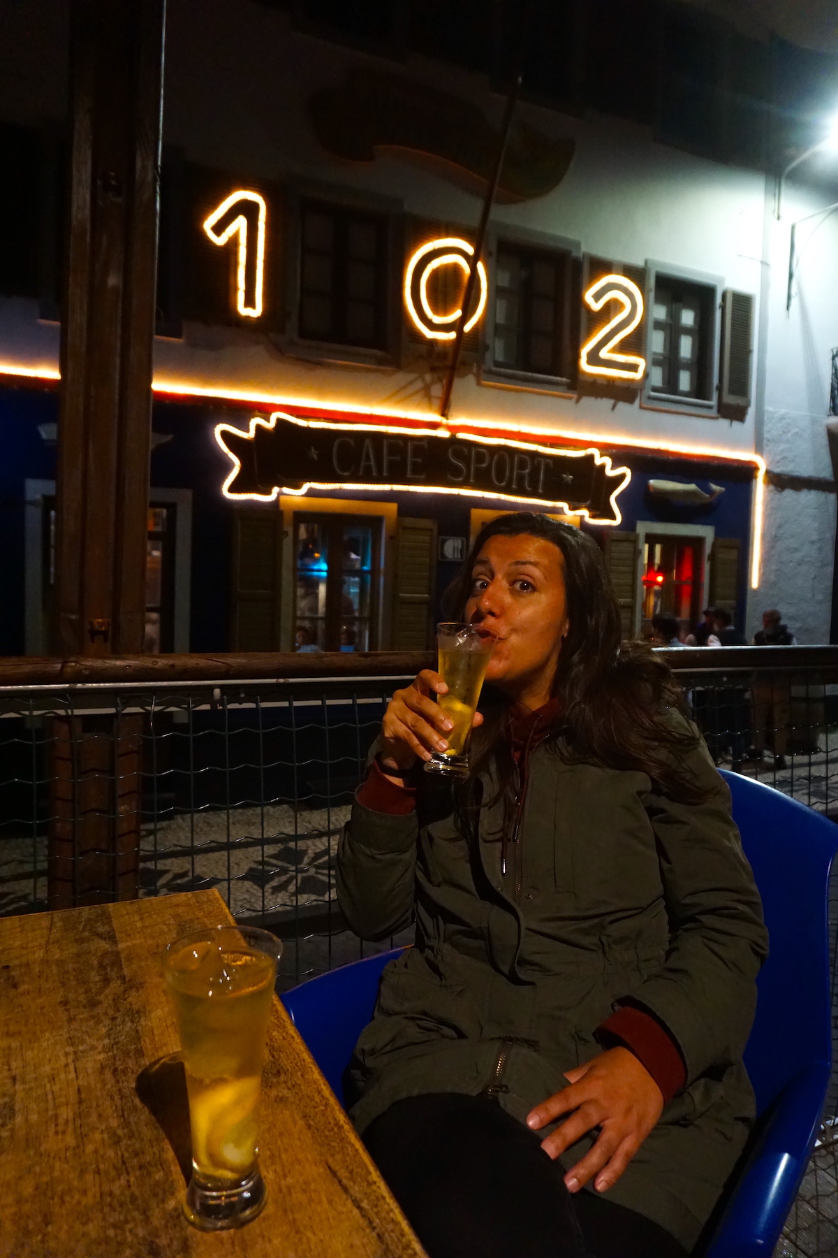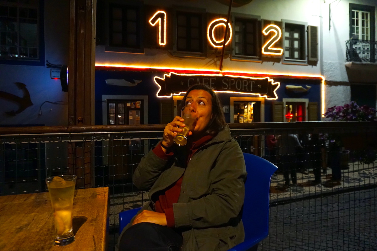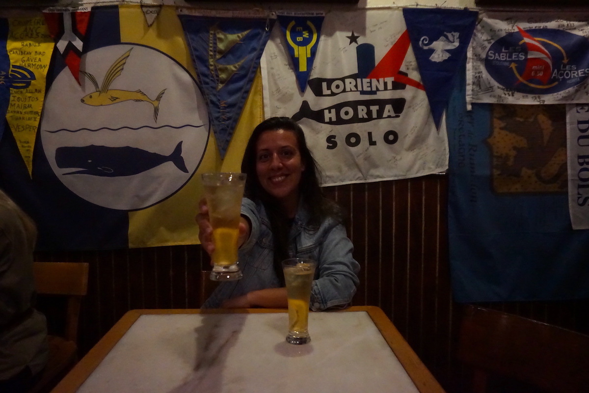 - Peter Café Sport: a mythical place in Faial with more than a hundred years and of which it is even said that “if you have not been to Peter’s you have not really been to Horta”. It’s easy to know you’ve arrived because the neon in the shape of a sperm whale marks the beginning of the street and it’s a meeting point for sailors and travelers from all over the world, so you’ll always see people outside with a drink in their hand. If, as in Randomtrip, you like gin and tonic, you can’t miss their Gin do Mar, distilled with passion fruit (2,90€ each) although if you want to have a snack too, they have for example then “açorianinha“, a francesinha from the Azores (don’t get your hopes up, you are not in Porto), or a whale soup (calm down, not everything is what it seems) which is actually a meat soup inspired by what the whalers ate before going to sea (at Randomtrip we didn’t try any of the food at Peter’s so we can’t tell you first hand, we “only” tried a few Gins do mar….) and we were especially spoiled by the wonderful ambiance.