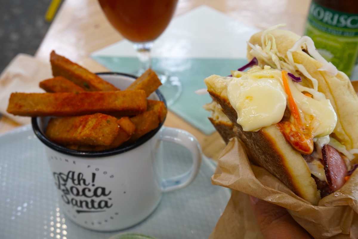 - Ah! Boca Santa: we already mentioned them, one of our favorites in Faial where we tasted some of the best burgers (they also have vegetarian ones!) we have ever eaten in our life. Homemade bread (bolo lêvedo azoriano), O’Morro cheese and local ingredients with unbeatable service, craft beers and local snacks. You can also try the gambuzinas (tuna, potato and São Jorge cheese croquettes) as a starter. Closed on Sundays and Mondays.