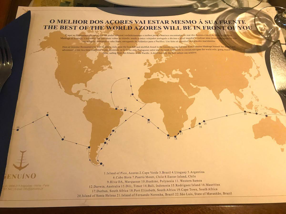 - Genuíno, or rather, the restaurant of Genuíno Madruga, Portuguese adventurer who between 2000 and 2002 made the first circumnavigation under sail, alone, and repeated the round-the-world trip in the same boat between 2007 and 2009. Each table in the restaurant tells a story, as under the glass of the table top are various objects from his voyages. We tried the fish and tuna meatballs but the best part was meeting the endearing adventurer Genuíno. On Fridays there is fado night. As a curiosity, tell you that when the dish arrives at the table do not be surprised if you hear a “Boa Viagem” (Good Trip) instead of the classic “Bom Apetite” (bon appetit), after all, you are in a house of travels and, in this case, about to sail through Azorean flavors.