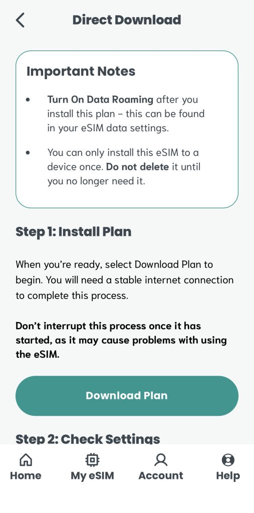 - Install and Activate: Download the eSIM before your trip and install it following the instructions just before you travel or when you land (as usually the plans have a time limit and it starts counting when you install it or when it connects to a network)