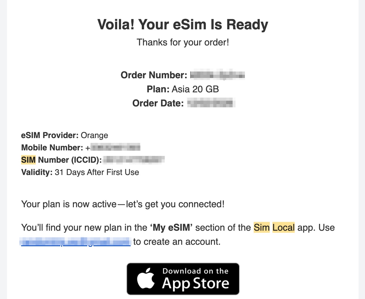 The Sim Local eSIM setup process is incredibly straightforward and takes about five minutes: